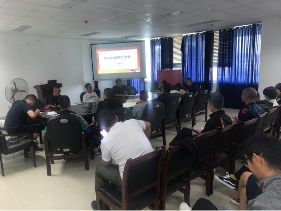 在三楼会议室召开全体党员政治理论学习会议暨教学工作会议,会议由学院党委书记姚思勤主持,全体党员参加政治理论学习会议,全体教职工参加教学工作会议。