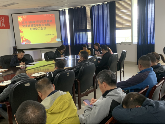 在体育馆三楼召开基层党委换届选举相关条例、纪律学习会议,会议由党委书记姚思勤同志主持,全院教职员工共同参加。
