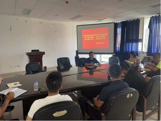 2021年6月22日12:30,学院党史学习教育暨“牢记殷切嘱托、忠诚干净担当、喜迎建党百年”专题学习会议在体育馆三楼会议室召开,会议由党委书记姚思勤同志主持,全院副科级以上干部、教研室负责同志、学院各支部书记共同参加本次会议。