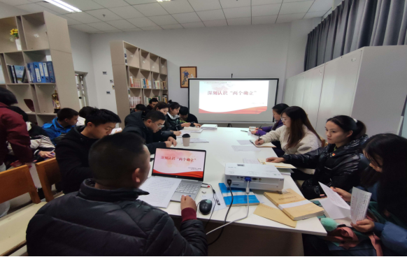 党委书记姚思勤在党员活动室为学院学生支部全体党员做了《深刻认识“两个确立”》的专题党课,明确指出“两个确立”的提出反映了全党全军全国各族人民共同心愿,具有决定性意义,是十九届六中全会的重大历史性贡献。