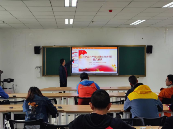 5月19日中午,学院党委书记姚思勤在体育馆三楼会议室为学院副科级以上干部上党课,结合学院工作实际,认真解读了《中国共产党纪律处分条例》,学院副科级以上干部及教研室负责同志共同参加。