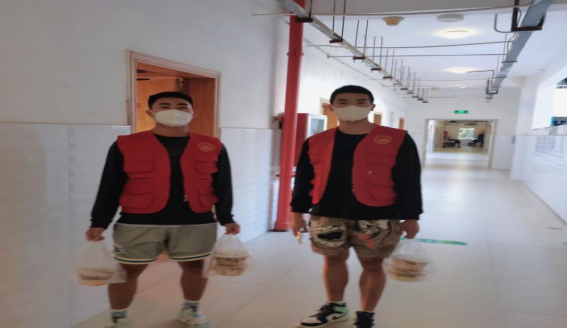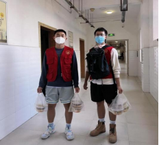 学生党员组成抗疫突击队,为被隔离同学提供全面周到的服务。