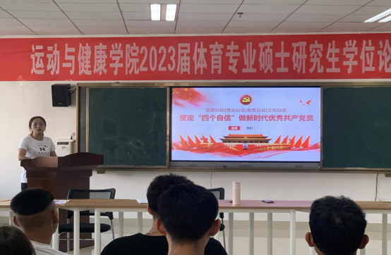 研究生党支部书记周利同志以“坚定‘四个自信’,做新时代优秀共产党员”为题为研究生党支部全体党员讲授专题党课,引导党员同志切实做到对党忠诚、为党分忧、为党担责、为党尽责,为党的建设贡献力量。
