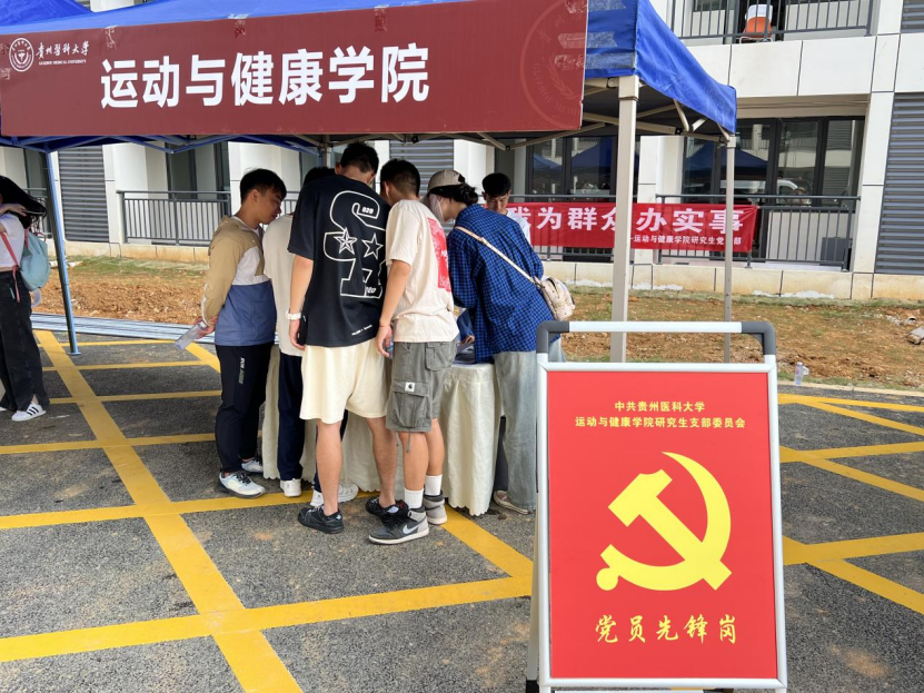 2023级新生报到的日子,研究生党支部全体党员发挥党员先锋模范作用,开展了“穿山越海,共赴贵医”我为群众办实事主题党日活动,积极参与到此次迎新工作中。