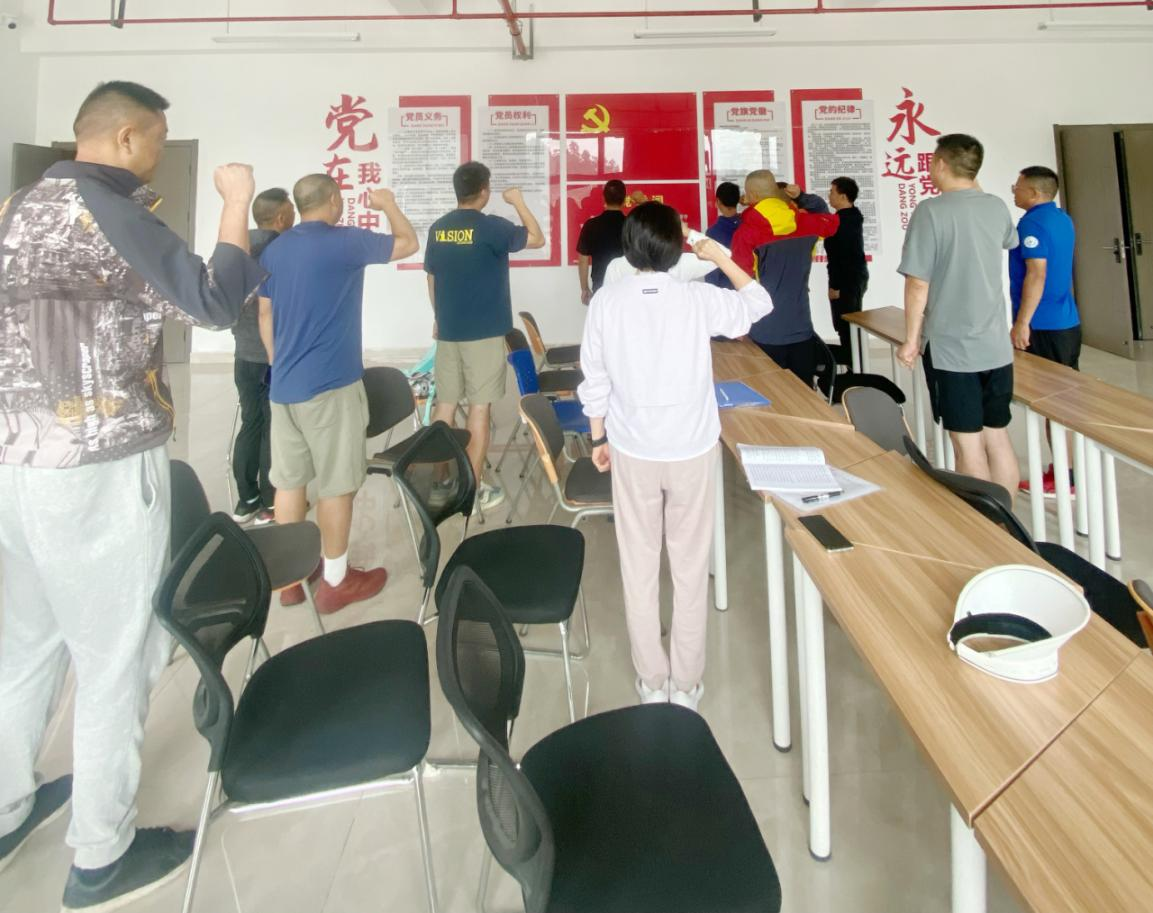 学习完毕后,史伟带领新入党的预备党员、6月过政治生日的党员以及全体党员开展了入党宣誓。