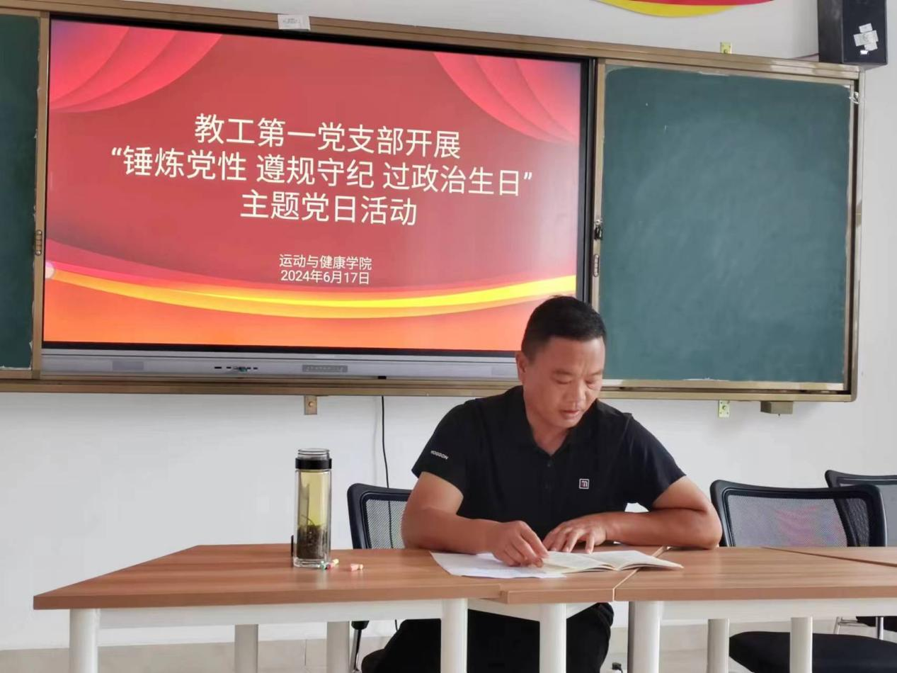 教工第一党支部在体育馆M层党员活动室开展了“锤炼党性 遵规守纪 过政治生日”主题党日活动。活动由支部书记史伟主持,支部党员参加了此次活动。