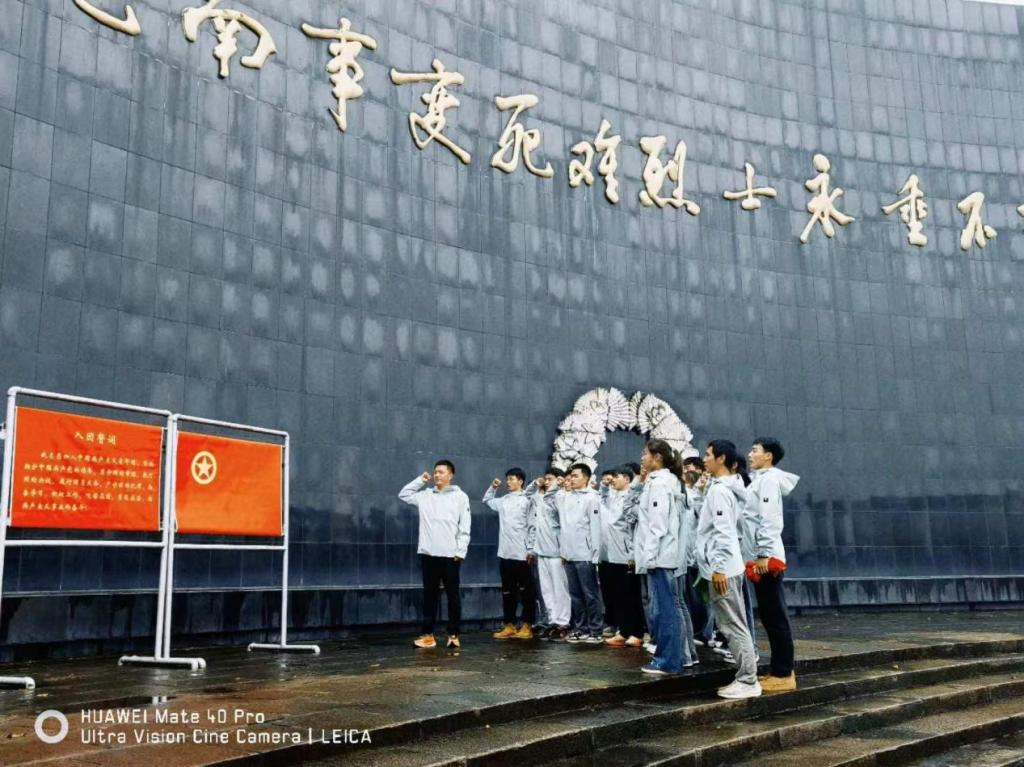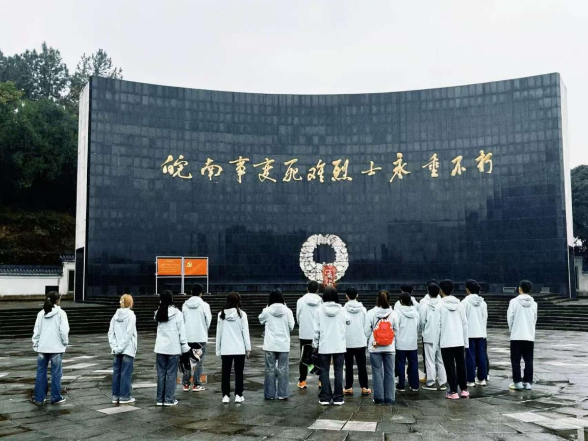实践参观结束后,团支部成员在主碑纪念广场中心,在 “皖南事变死难烈士永垂不朽” 的题词前,在团旗和入团宣言前,由指导老师李波带领团支部成员重温入团誓词,庄严宣誓。
