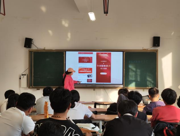随后,辅导员李歆鑫围绕“保密安全的重要性、法律法规与责任义务、保密防范措施与实践、全员行动倡议”等板块进行保密知识宣传。对保密安全工作的重要性和必要性、保密工作的操作规范和注意事项进行了详细阐述,帮助大家明确在日常学习、工作中如何做到严守秘密,避免出现泄密风险。