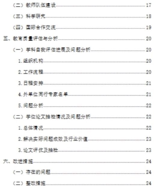 (4)材料组织。学位点根据最终确定的评估安排和要求,组织自我评估材料。评估材料应提前发送专家,根据专家意见,补充完善自评材料。