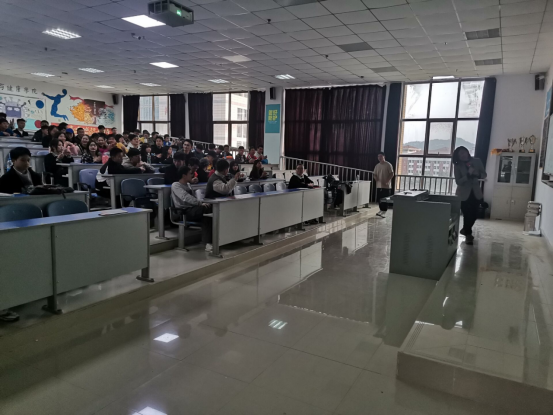 在现场问答环节,同学们积极互动,气氛活跃。讲座结束后,两位经理与同学们就目前就业遇到的困惑和问题进行了热情交流。