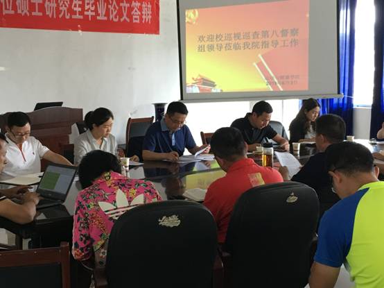 学院党委书记姚思勤汇报了学院巡察反馈问题整改落实情况。主要从存在的问题、整改措施以及完成情况等几个方面进行了详细汇报。最后,督导组对学院问题整改材料进行了查阅,并与参会人员进行了谈话。