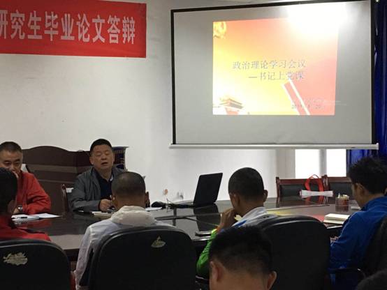党委书记姚思勤在体育馆三楼会议室为学院党员老师上题为“坚持用习近平新时代中国特色社会主义思想武装全党”的党课,全体党员教师参加会议。