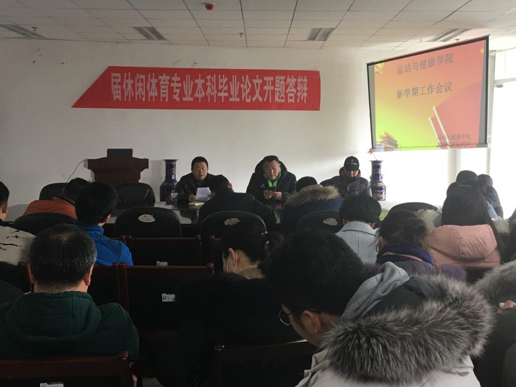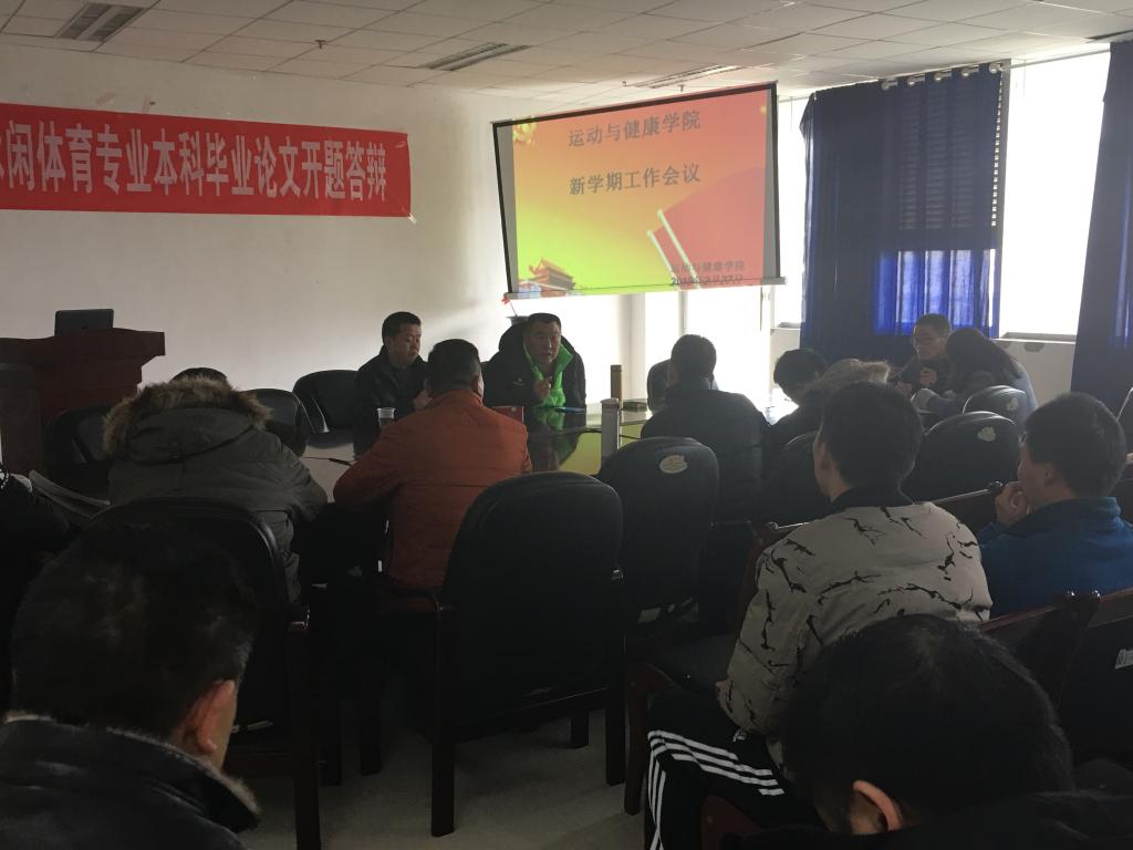于体育馆三楼会议室召开了新学期工作会议,参加会议人员学院全体教职员工。
