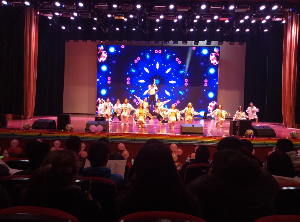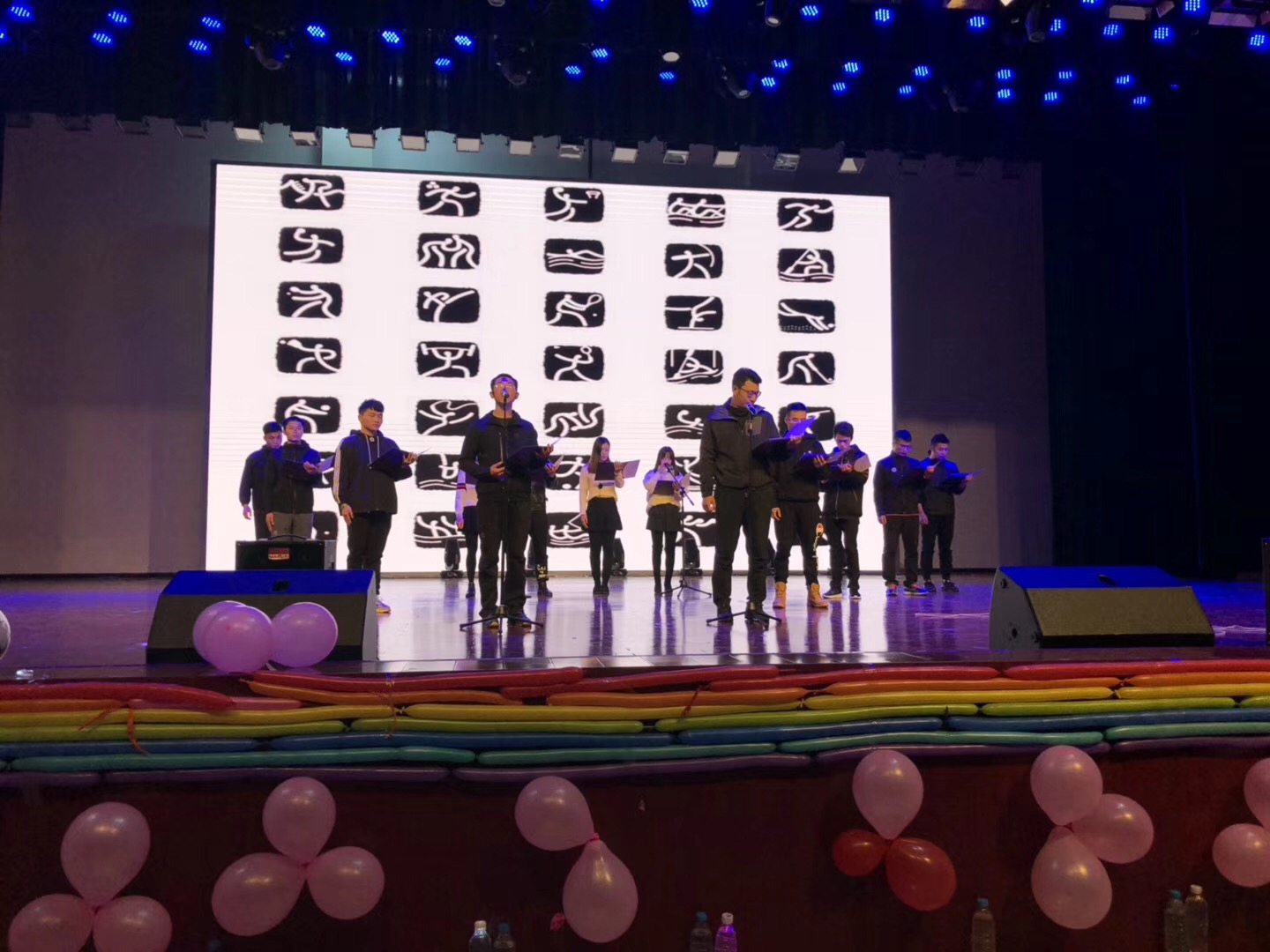 师生的活力与风采。最后由18级同学带来的唱跳节目《仰望星空》,引发了全体观众大合唱,晚会在优美的歌声中落下了帷幕。