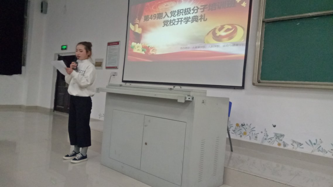 、大健康学院和儿科学院在1601教室联合举行第四十九期入党积极分子培训班开班典礼。本期积极分子培训班一共有107名学员。参加本次开班典礼的有大健康学院党委书记丁朝刚,儿科学院党委书记罗昭逊,草莓视频