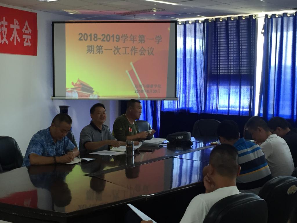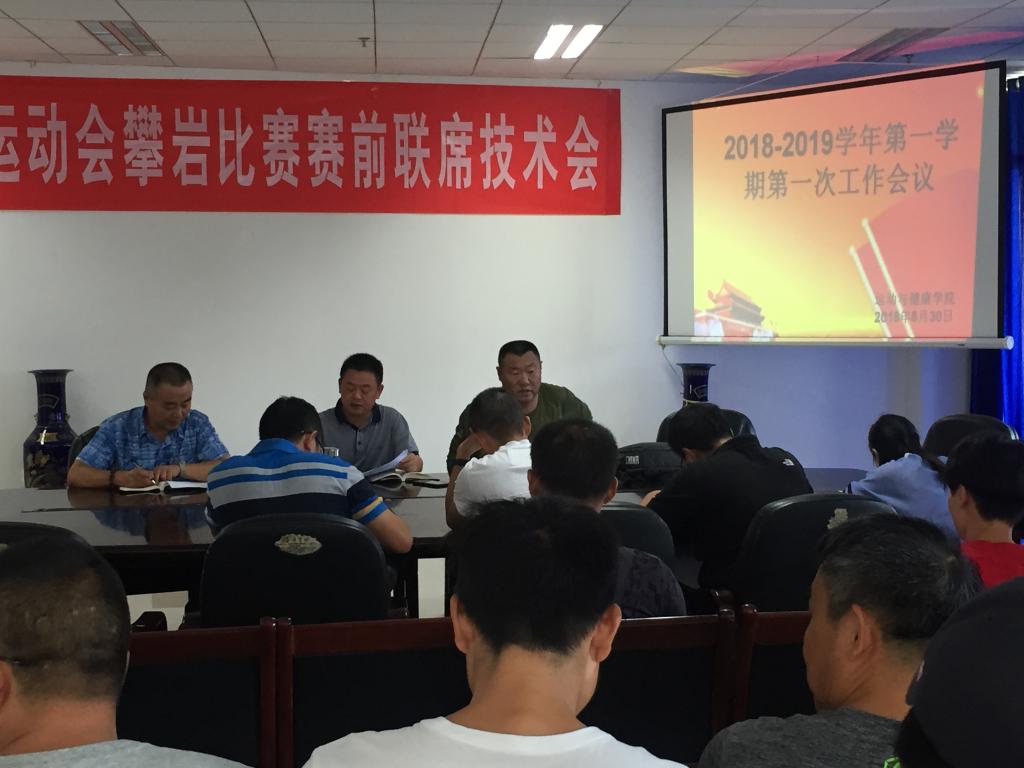 于体育馆三楼召开了新学期全体教职工开学工作会议,会议由学院副院长陈庆主持。