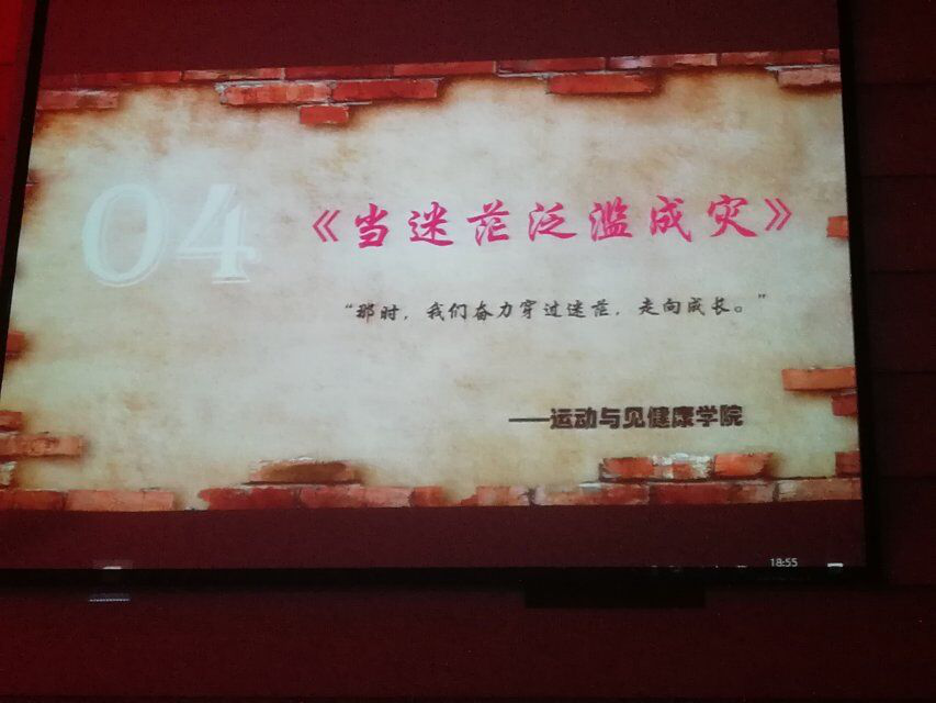 是第四支队伍,他们的节目是“《当迷茫泛滥成灾》——那时,我们奋力穿过迷茫,走向成长!”演员们声情并貌的演绎着一幕幕精彩的画面;绘声绘色的描绘着一场场温暖的剧情;出神入化的诠释着一句句幽默风趣的语言。在一番激烈的角逐之后,本次比赛以草莓视频