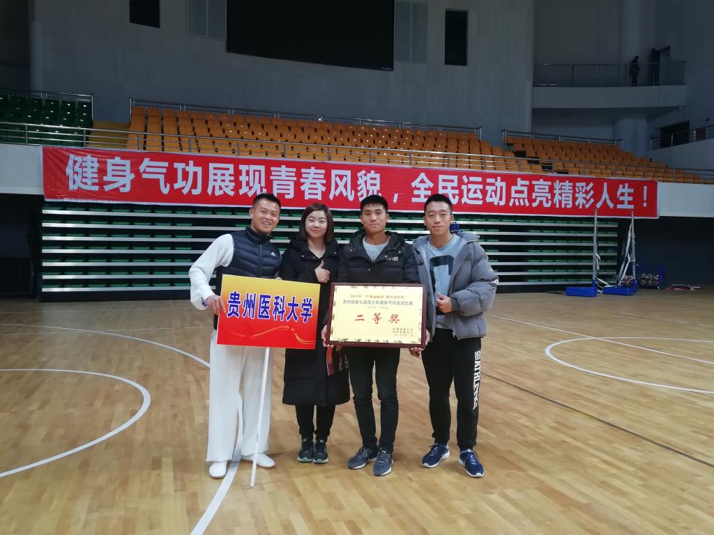 2017年12月8日至10日,贵州省第七届青少年健身气功交流比赛在贵州师范学院举行,草莓视频 由草莓视频 党委副书记孟立科担任领队,宋义、周文源、刘会、金麟、杨祥、代雨霞6名队员参加。参赛队员团结协作,不畏强手,努力拼搏,荣获了团队五禽戏二等奖、个人五禽戏第三名的好成绩。
