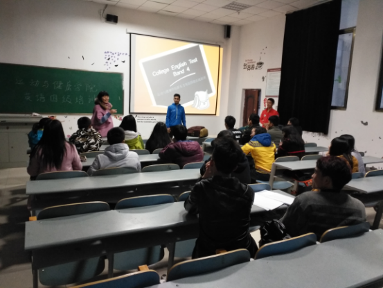 祝老师特别邀请外国友人Pravin,研究生师兄卢吉洪和唐劲道亲临现场为同学们讲解英语学习的方法与过级技巧。