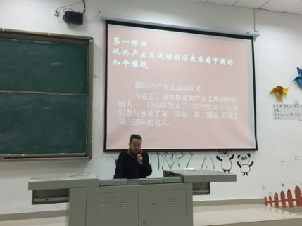 彭安辉书记告诉我们通过缅怀党的光辉历程来接受党的知识的熏陶、提高党性修养,使每个学员提高对党的认识、增进对党的感情,在思想和行动上做好加入党组织的准备,在生活和学习中积极发挥模范带头作用,贯彻落实以学习习总书记的系列讲话精神为目标;从共产主义运动的历史来看中国的和平崛起,从多角度、多方面介绍我们伟大的中国共产党一路经历的艰难险阻。
