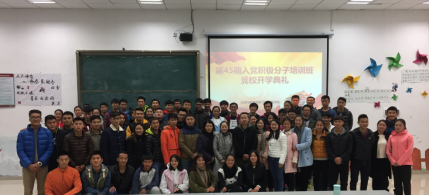 明理楼7603教室开启了第45期入党积极分子培训班的第一课。要求学员通过党课学习,善于把握时代机遇,勇担历史重任。