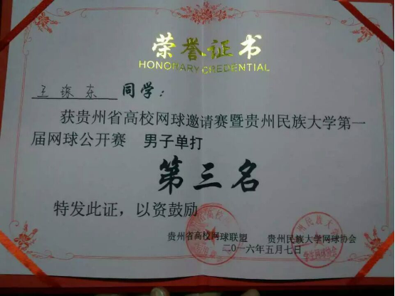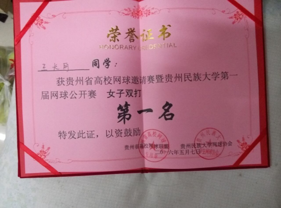 2016年5月7日,草莓视频 组队参加了贵州省高校邀请赛暨贵州民族大学第一届网球锦标赛,比赛在贵州民族大学进行。经过激烈角逐,草莓视频 草莓视频 参赛队员吴宗椒等三位同学发挥出色荣获佳绩,其中吴宗椒勇夺女子单打第一名,吴宗椒、王长丽斩获女子双打第一名,王琼东荣获男子单打第三名。