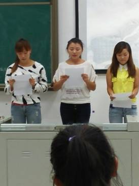 在2014年9月25日晚7点在4606教室举办了朗诵比赛。本次比赛形式多样,分为单人组合多人组,使参赛选手有了更大的发挥空间,给了那些不想自信的学生一次锻炼自己的机会。本次比赛得到了评委和同学们的高度评价,本次比赛不仅展示了大学生的时代风采,而且对我们以后的工作的开展提供了借鉴.