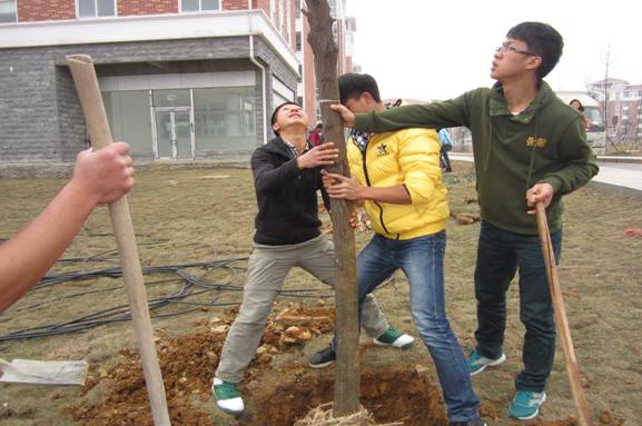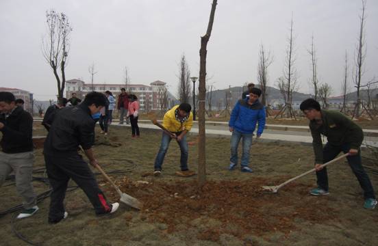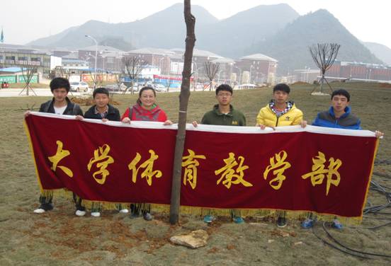 2013年3月4日上午,大学体育教学部书记兰玲带领户外专业学生代表一行7人,前往新校区参加由学院学生工作处组织的“美化环境,携手共建校园”为主题的植树活动。