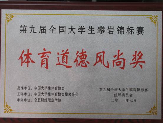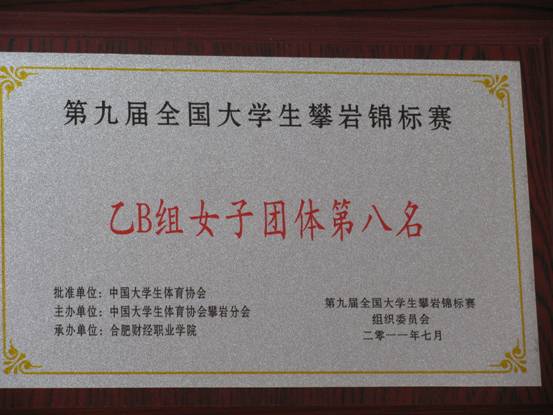 2011年7月,大学体育教学部组队参加第九届全国大学生攀岩锦标赛,获乙B组女子团体第八名及体育道德风尚奖。
