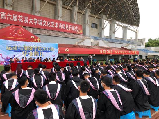 户外运动教研室主任田维华老师作为教师代表致辞,田老师告诫所有毕业生离开校园并不意味着学习生涯的结束,同学们不要停止学习,大家要学会尊重自己的专业、尊重自己的学校、尊重自己的人格,对自我的尊重才是提升修养的正道。