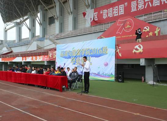 副院长陈庆主持,全院副科级以上干部、各教研室负责人、专业任课教师及2020届全体毕业生参加。