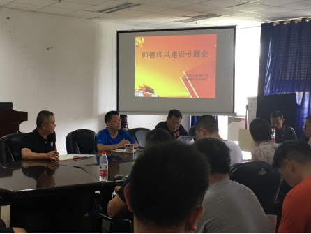 在三楼会议室召开师德师风专题会议,会议由党委书记姚思勤同志主持,全体教职工共同参加。