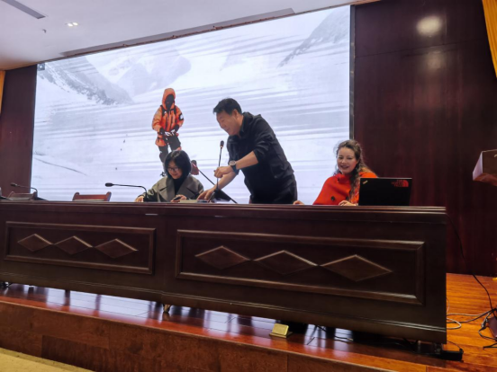 黄春燕与大家分享了登峰时拍摄的珍贵画面,并不时引经据典,将登顶后的所感所悟和人生启示进行了传递和交流。这让同学们不仅直观感受到了登山时的惊险和喜悦,同时还明白了许多做人做事的道理。她特别指出,在爬山过程中,她也有过害怕,但真正令人恐惧的是恐惧本身,只有不断坚持,不断克服,不断前行,你才能战胜困难,达到你心中的目标。我们只有专注于所迈出的每一步,才能一步步实现梦想。人生没有捷径,想走快一点,只能多付出一点。