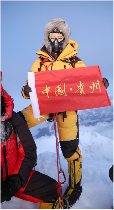 2017年5月22日凌晨6时许,一面印有“中国.贵州”字样的红旗迎风飘扬在世界最高峰一-珠穆朗玛峰顶。成功登顶珠峰的黄春燕,是贵州史上首个登上珠峰的女性。