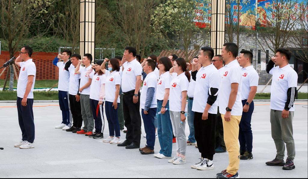 全体党员在支部书记彭召方的带领下,重温入党誓词,那一句句铿将有力的誓词是全体党员对党庄严的承诺。