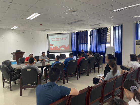 在体育馆三楼会议室召开第四次就业工作专题会议,会议由党委书记姚思勤同志主持,学院全体就业结对帮扶教师参加。