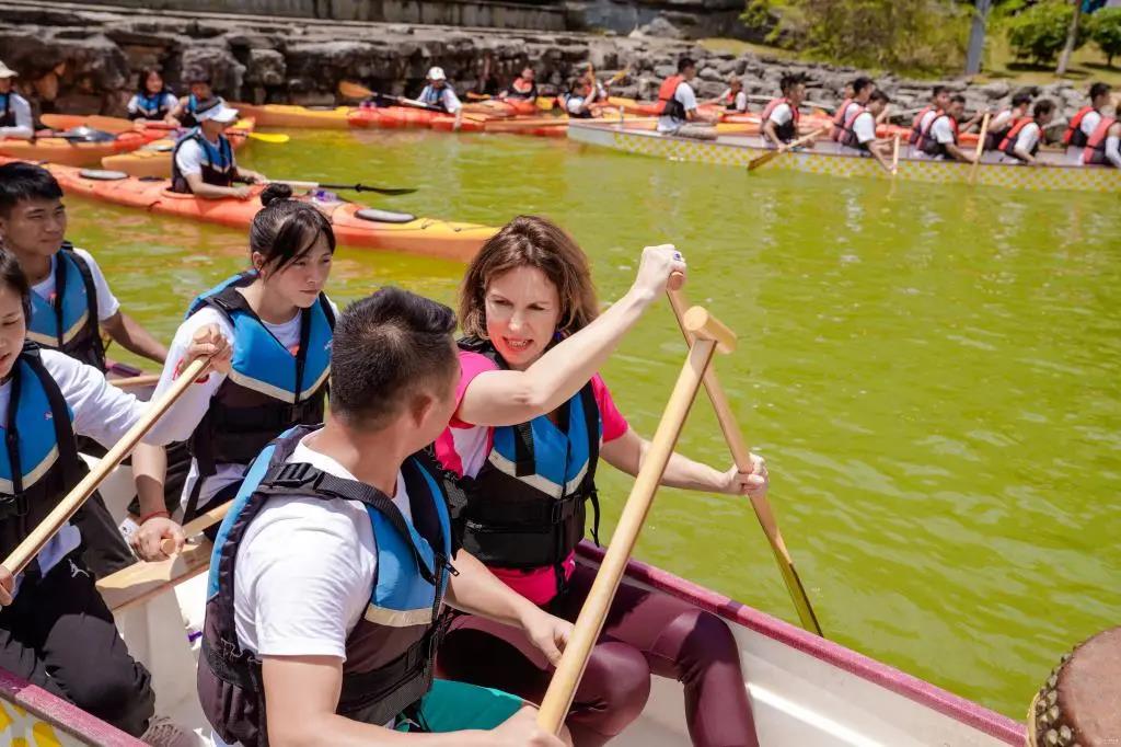 吴若兰还亲自参加龙舟比赛,气氛热烈。