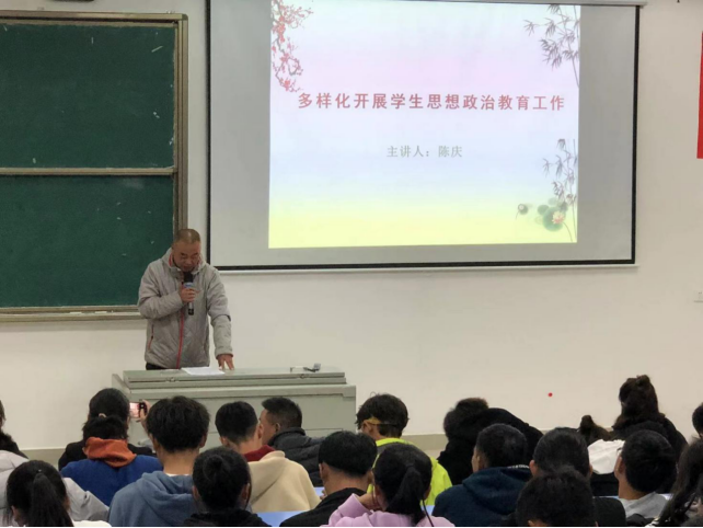 党委副书记陈庆以“多样化开展学生思想政治教育工作”为题,为联系班级上了思想政治课。