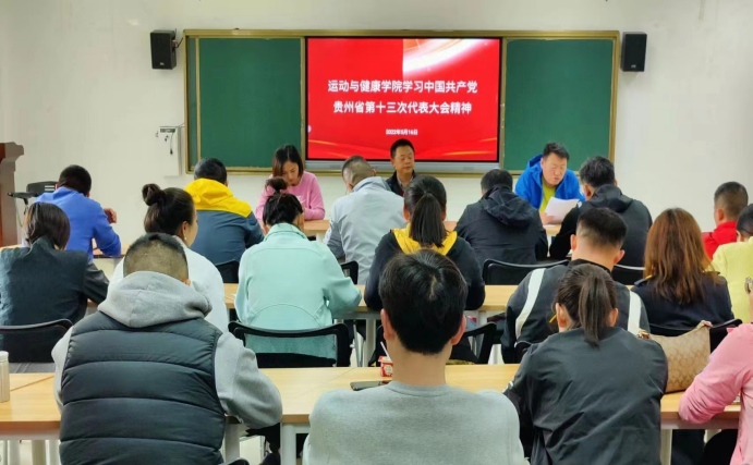 全体党员在体育馆三楼会议室学习传达中国共产党贵州省第十三次代表大会精神。会议由党委书记姚思勤同志主持,学院全体党员共同参加。