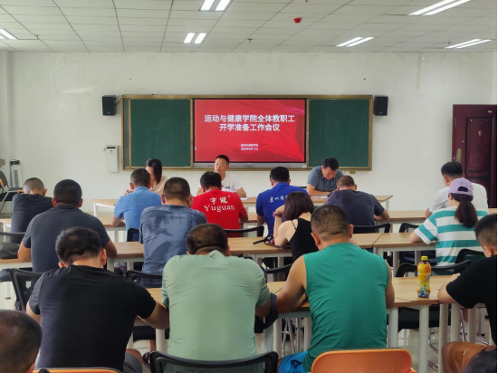 在体育馆三楼会议室召开2022-2023学年第一学期开学准备工作会议,会议由党委书记姚思勤同志主持,学院全体教职工共同参加。
