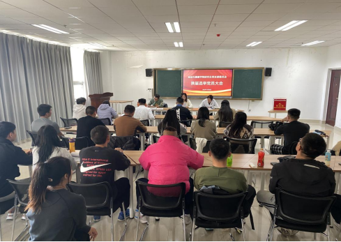 研究生党支部在体育馆三楼研究生活动室召开支部换届选举党员大会,会议由党支部书记周利同志主持,支部党员共28人参加会议,3人因事请假。