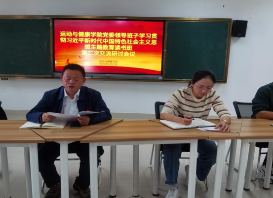 党委学习贯彻习近平新时代中国特色社会主义思想主题教育读书班第二次专题交流研讨会在体育馆三楼研究生多媒体教室举行。交流研讨会由姚思勤主持,国伟院长由于出差,通过腾讯视频线上参与交流研讨,学院全体党委成员参加。