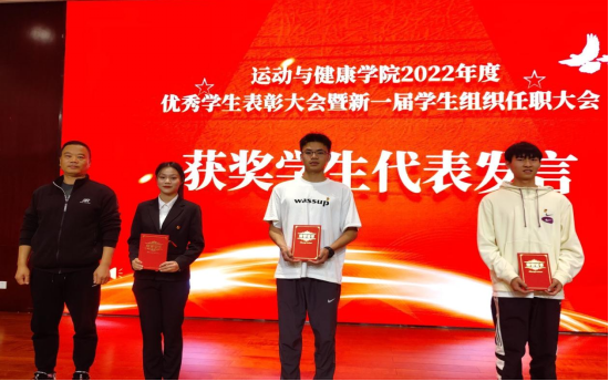 优秀学生干部、学生会成员在一年中对学院做出的贡献和成绩表示了感谢,对获奖学生在学风建设和院风建设工作中起到的模范带头作用和取得的突出成绩表示了肯定。他还指出,表彰大会旨在将爱国教育、榜样教育、励志教育、感恩教育、荣校教育等育人内涵相融合,见证学生成长,发挥获奖学生的榜样力量,引领更多学生向榜样看齐,努力践行“追求卓越”的体育人精神,成长为德智体美劳全面发展的能够引领未来的卓越人才,在全院范围内掀起“学先进、赶先进”的新高潮,共同为实现中华民族伟大复兴的中国梦添砖加瓦。