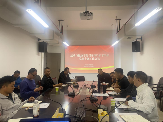2023年下半年党建专题工作会议在云漫湖校区综合体育馆二楼会议室召开,学院副科级以上干部(包含教研室负责人),党委书记姚思勤主持会议。