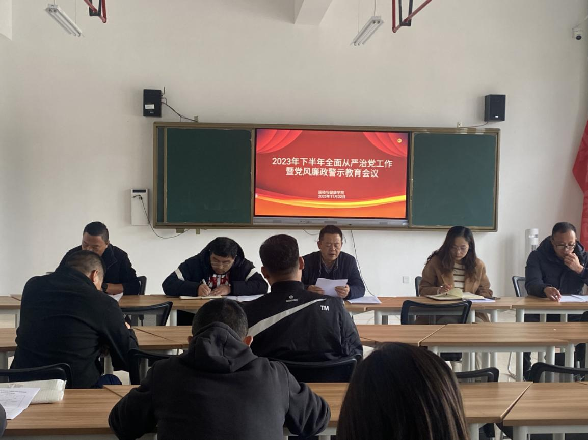 党委召开了2023年下半年全面从严治党工作暨党风廉政警示教育会议,会议由党委书记姚思勤主持,全体党委委员、副科级以上干部(包含教研室负责人)以及各党支部书记参加会议。