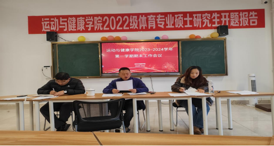 在体育馆M层研究生多媒体教室召开学院2023-2024学年度第一学期期末工作会议。会议由党委书记姚思勤同志主持,学院全体教职工共同参加。