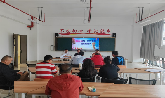 会议第一项全体教职工进行反邪教宣传片的观看。