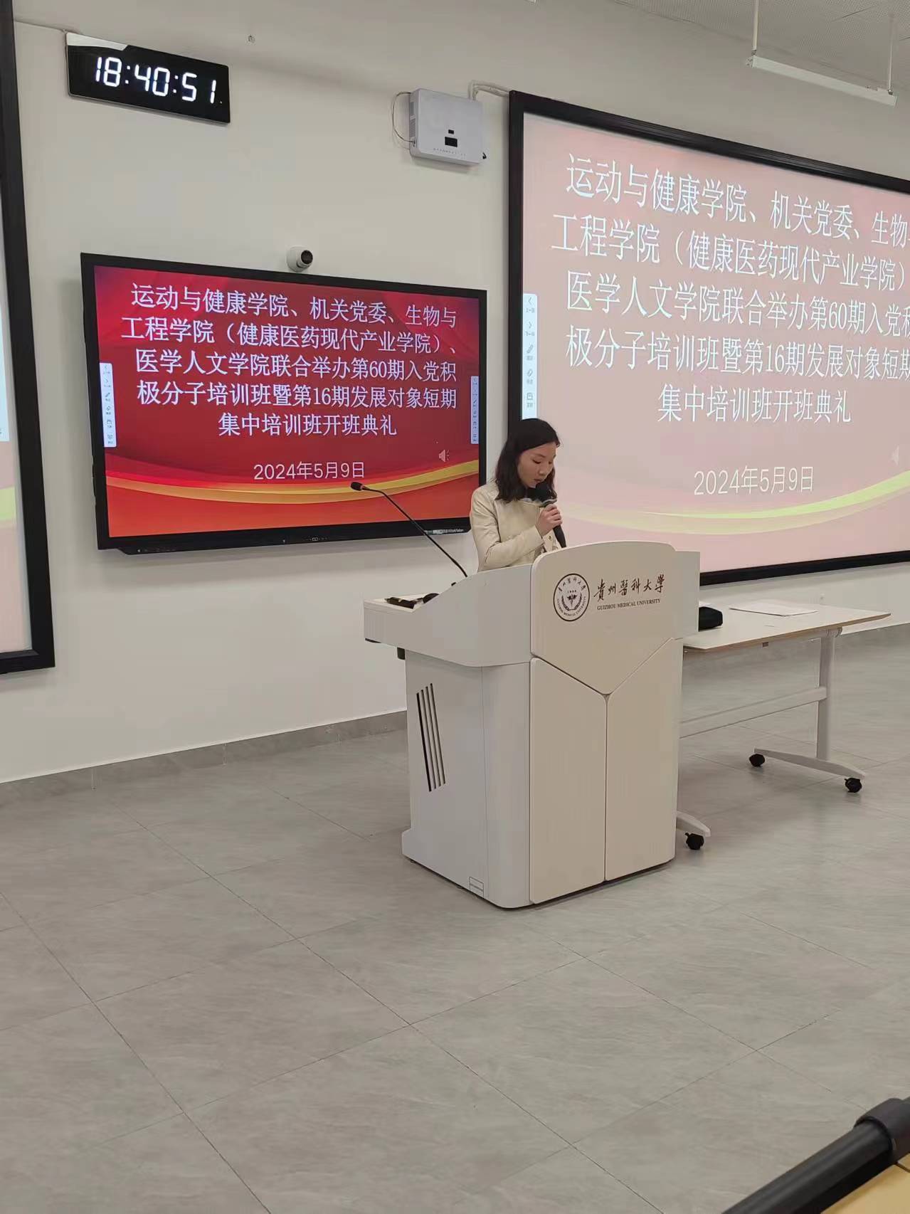 积极分子培训班班主任陈卫、发展对象短期集中培训班班主任陈雨介绍了本次培训班的学习方式、考核方式。重点强调了上课纪律,希望同学珍惜此次机会,努力学习,通过考核,早日加入中国共产党。