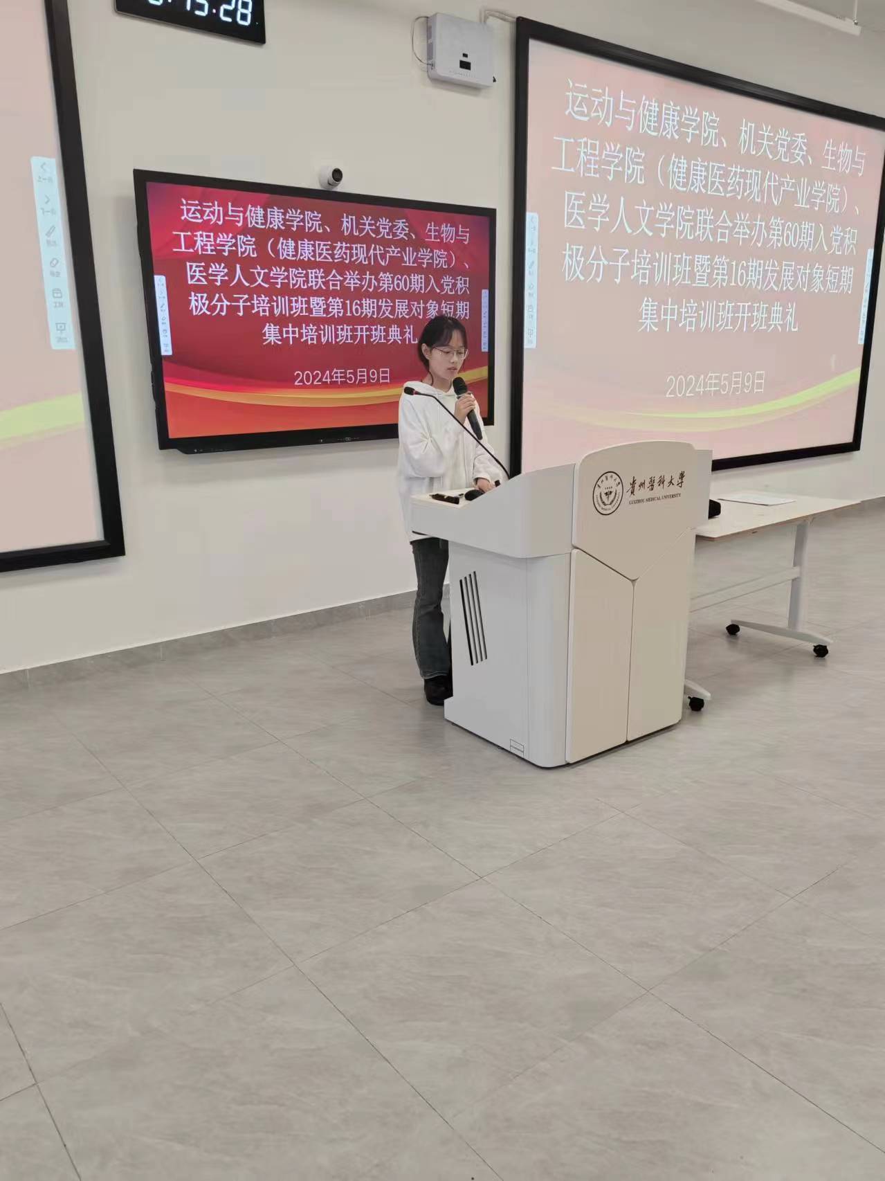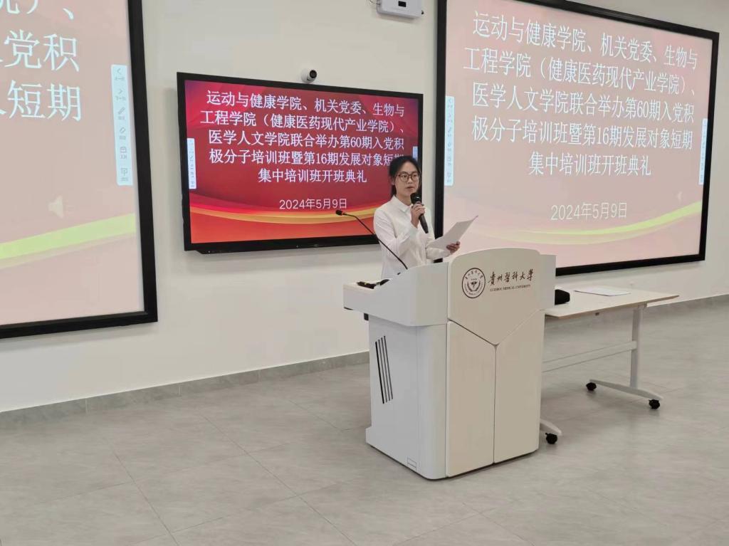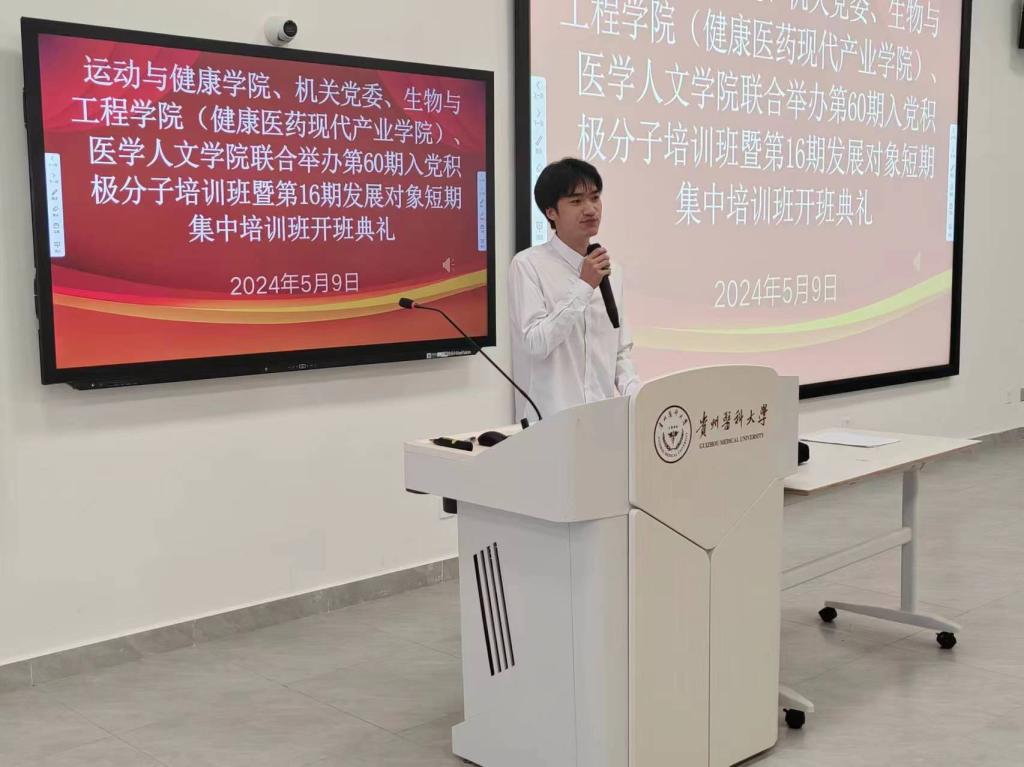 2023级休闲体育程则利、生物与工程学院(健康医药现代产业学院)生物医学工程2023级王净雅同学代表积极分子培训学员作了发言,医学人文学院高龙万齐代表发展对象培训学员作了发言。大家在发言中都坚定表明了入党的决心和信心,也表明了要以拼搏奋斗的精神担负起实现中华民族伟大复兴的重任。