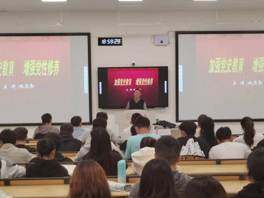 开班典礼结束后,姚思勤为发展对象培训班学员上第一课“加强党史教育,增强党性修养”。他从学习党史的意义以及党的不同时期的历史进行了深情讲解,带同学们重新回顾了党波澜壮阔的百年历史,希望同学们铭记党的历史,铭记党百年奋斗取得的重大成就和历史经验,作为新时代的青年,努力完成党组织的考验,以坚定的信仰和饱满的热情积极投入到实现中华民族伟大复兴的时代潮流中去。